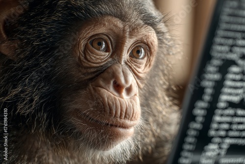 Joyful morning with a laptop-savvy anthropomorphic ape. Ape laptop fun. Why crypto trading may not be the escape you expect. Bright room joy. Ape bright delight.