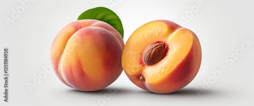 peach, peach, fruit, fruit, summer fruit, healthy eating, vitamin, delicious, sweet, dessert, food photography, still life, closeup, macro, organic, natural, leaf, green leaf, white background, isolated, vibrant, colourful, healthy