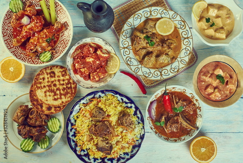indian, cookery, assorted, national, set, topview, food, fresh, meal, dish