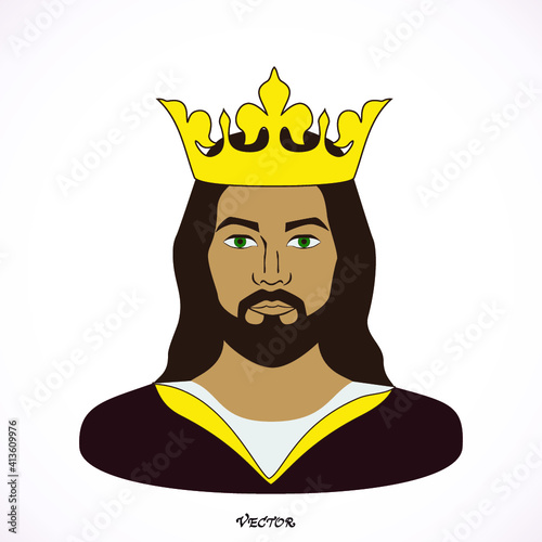 king wearing crown and mantle, cartoon vector illustration isolated in white background.