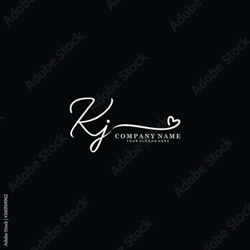 KJ initials signature logo. Handwriting logo vector templates. Hand drawn Calligraphy lettering Vector illustration.