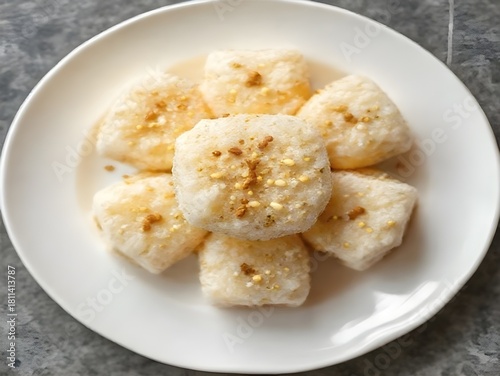 Krayasart in white plate,Thai sweet made of rice, nut, sesame seeds and sugar.Top view.