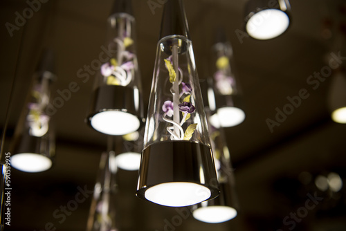 apartment, bend, black, bright, bulb, ceiling, chandelier, colours, comfort, cone, dark, decorating, decoration, design, electrical, emotion, evening, fashion, flat, flora, flower, glasses, glitz, glow, green, hanging, home, house, illuminated, indoor, inside, interior, joy, lamp, lantern, led, light, lighting, luster, metal, modern, night, object, ornament, purple, radiance, shine, sparkle, suspension
