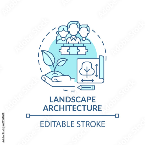 Landscape architecture concept icon. Co-design application field idea thin line illustration. Achieving environmental and aesthetic outcomes. Vector isolated outline RGB color drawing. Editable stroke