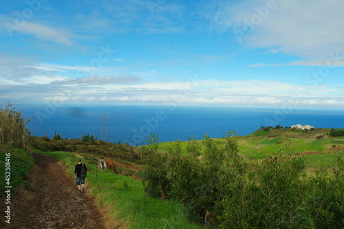 madeira, countryside, landscape, coast, water, ocean, nature, travel, cliff, view, panorama, hiking, man, sky, green