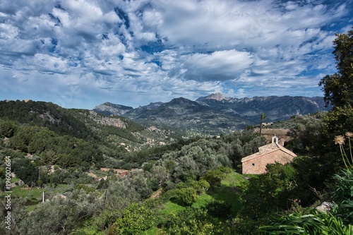 landscape with hermitage and mountains in Sierra de Tramuntana; Majorca