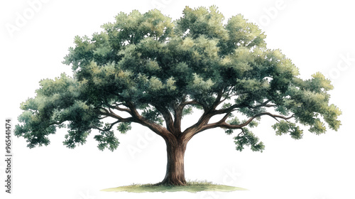 Large Oak Tree in Watercolor Style with Grunge Background