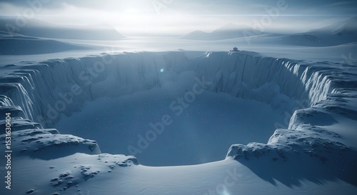 crater, cliff, mountain, snow, ice, glacé, arctic, landscape, morning, light, soft light, cold, calm, icy, winter, huge, natural, remote, fisheye, panoramic, deep, serene, frost, glacier, nature, scenic, chilly, still, crisp, daylight, snowfall, exploration, adventure, environment, travel