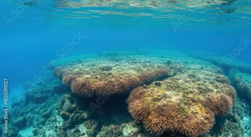 underwater, ocean, sea, water, nature, environment, ecosystem, marin, aquatic, seascape, reef, coral, ocean floor, sand, rock, sunlight, light, ray, ripple, surface, shallow, deep, blue, turquoise, water, clear, transparent, tropical, exotic, wild, wildlife, natural, habitat, conservation, climate, change, fragile, delicate, beauty, pristine, unspoiled, life, biology, organism, invertebrate, polyp, colony