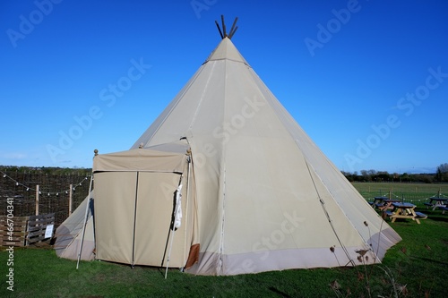 tipi, tipi, wigwam, venue, camp, field, britain, england, tour tourism, hospitality, canvas, travel, blue skies, entrance, awning, farmland, beige, flap, entertainment, rural, countryside, europa, tent, large, shelter