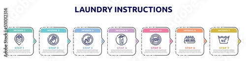 laundry instructions concept infographic design template. included inmigration check point, no arms, no bomb jump, fire estinguisher, food not allowed, ferry carrying cars, 40 degree laundry icons
