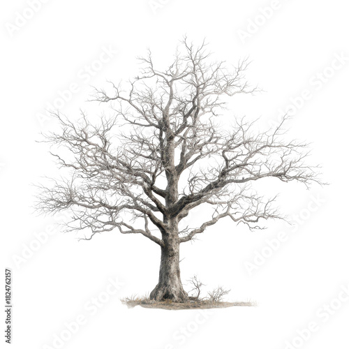 leafless old spooky tree, An old, leafless tree with twisted branches looms in a haunting landscape, creating a spooky and unsettling scene, isolated on transparent background
