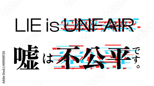 'Life in Unfair' Modern Typography with Glitched Leak Effect in English and Japanese Template