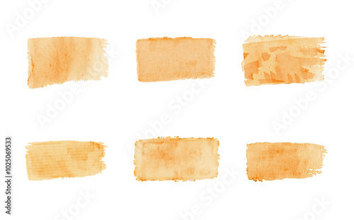 light orange brush stroke texture set, isolated, plain rectangle, paint and organic watercolor style