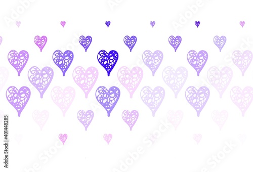 Light Pink, Blue vector background with hearts.