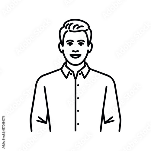 man, male, person, portrait, illustration, line art, outline, black-and-white, monochrome, simple, minimalist, graphic, design, avatar, icon, profile, button down shirt, smiling, happy, face, head, shoulder, casual attire, clean, modern, vector, clip art, website, app