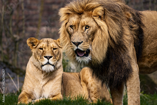 Lion and lioness lying on the ground in a savannah