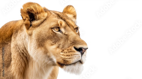 Lioness on a white background. Cat family. Wildlife. Predatory animal. Mammals.