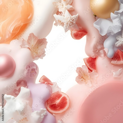 fluid, pastel, organic, soft, pink, blue, peach, cream, glossy, transparent, droplet, bubble, flow, abstract, smooth, motion, dreamy, blend, centered