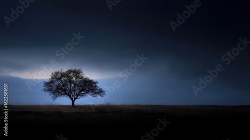 silhouette, tree, field, dark, sky, nature, solitude, landscape, environment, tranquil, isolation, cloud, dramatic, blue, night, shadow, wilderness, contrast, calm, countryside, evening, minimalism, stillness, scene, botanical, growth, foliage, calmness, weather, horizon, rural, dusk, scenery, beauty, atmospheric, tree branch, leaf, sunlight, mood, view, peaceful, rustic, composition, visual, artistic, imagery