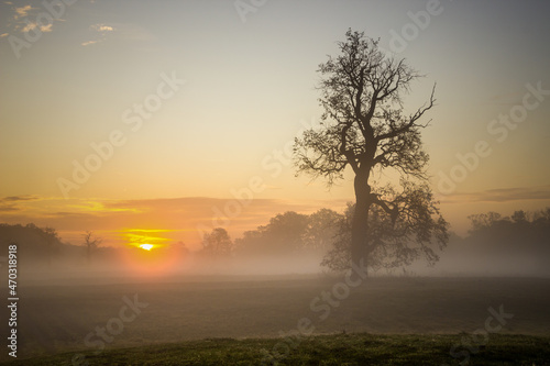 sunrise, sunset, oak, tree, autumn, leaf, colours, fall, october, red, orange, yellow, field, meadow, alley, park, nature, lonely, amazing, shadow, silence, beauty, scenic, forest, trail, landscape, rural, colourful, season, background, foliage, natural, wallpaper, beautiful, wood, sunny, sun, sky, tree, fog, morning