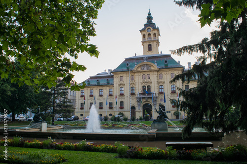 Looking across Széchenyi Park to the Town Hall of Szeged, Hungary
