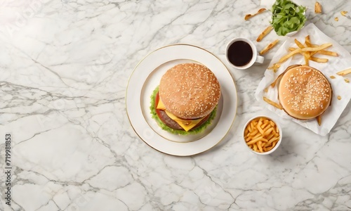 meal, cheeseburger, bun, lettuce, beef, onion, grilled, fresh, lunch, snack, dinner, hamburger, fast, tomatoes, burger, meat, eatery, fries, salad, french, sesame, food, rustic, bar-b-q, background, menu, delicious, cheese, blackboard, unhealthy, marble, favourite, sandwich, tasty, closeup, bread, brown