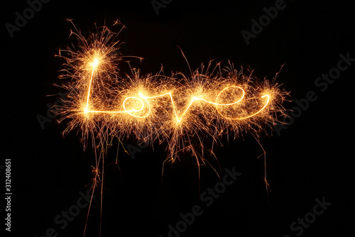 Love, Liebe geschrieben mit einer Wunderkerze, Leuchtschrift funkelt