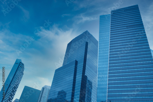 low angle view of singapore financial buildings at morning