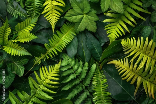 Lush Green Fern Leaves with Vibrant Foliage: Botanical Photography for Nature-Inspired Design