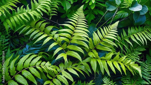 fern, tropical, foliage, vegetation, leaf, green, texture, background, dense, natural, plant, botanical, organic, lush, jungle, flora, rainforest, greenery, leaf, nature, exotic, growth, environment, landscape, pattern, vibrant, wild, undisturbed, habitat, shading, closeup, symmetric, diversity, season, verdant, fresh, abundance, ecosystem, wilderness, sunlight, palmy, underbrush, ornamental, bush