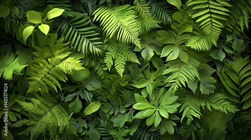 Lush Green Foliage Background A Textured Display of Ferns and Leaves