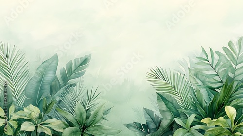 Lush green foliage tranquil forest digital art serene environment close-up view nature's beauty