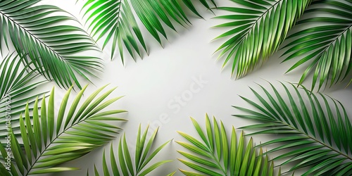 Lush Green Palm Fronds Arranged in a Symmetrical Pattern on a Light Background, Creating a Natural Frame for Text or Images