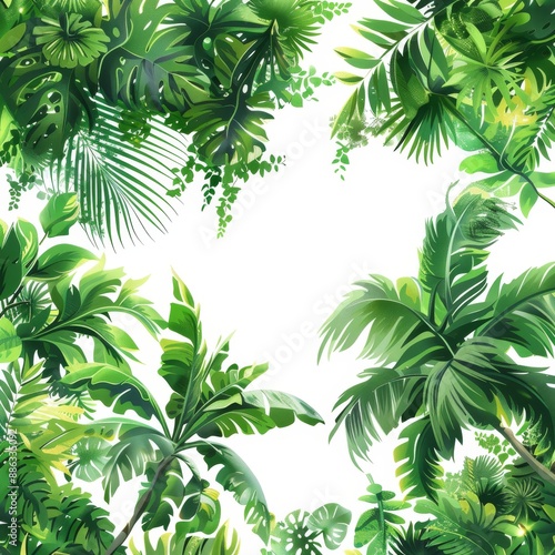 rainforest, dense, canopy, nature, vector, lush, foliage, green, leaf, tropical, forest, jungle, vibrant, isolated, white, background, exotic, flora, greenery, vegetation, plant, natural, element, botany, colours, ecology, concept, environment, detailed, illustration
