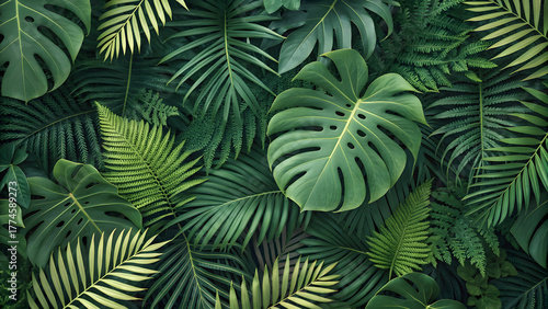 tropical, leaf, jungle, rainforest, monstera, fern, palm, green, botany, nature, plant, foliage, texture, vibrant, exotic, botanical, closeup, organic, flora, detail