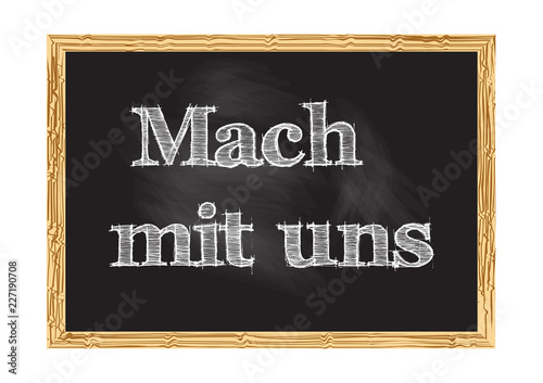 Mach mit uns - Do with us in German blackboard notice Vector illustration