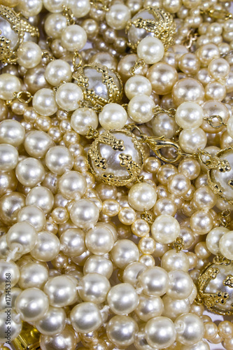 Macro Close Up of Beautiful Real Pearls and Necklaces Background