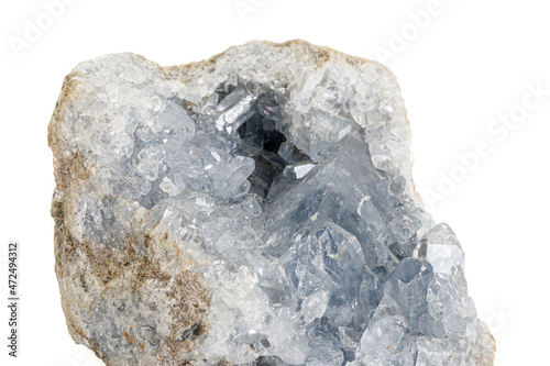 Macro mineral stone Celestine in the breed a white background