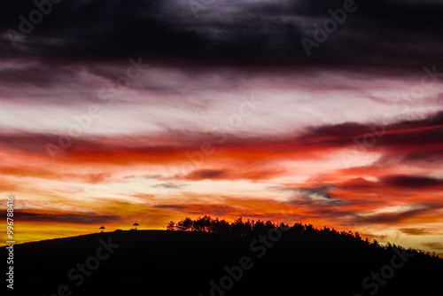 Magical orange pink blue yellow sky. Sunset with incredible colors.