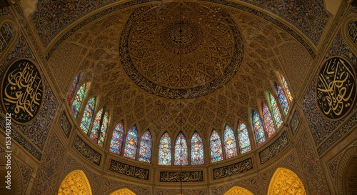 Magnificent Mosque Dome Interior: Intricate Details and Stained Glass
