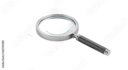 Magnifying Glass Resting on a Stack of White Paper in High Resolution Against Transparent Background