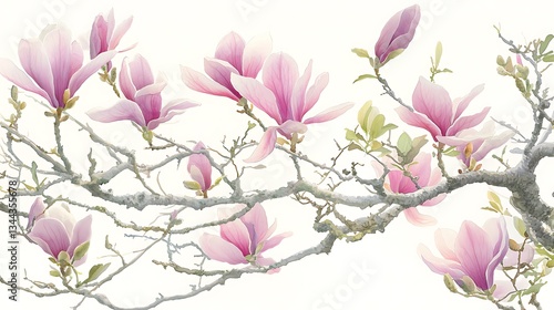magnolia, bloom, tree branch, floral, beauty, springtime, blossom, flower, pink, blooming, spring, tree, nature, plant, garden, botany, growth, fresh, beautiful, bloom, season, elegant, soft, detail, botanical, flora, delicate, bright, white, twig, macro, isolated, ornamental, design, pattern, background, closeup, natural, flowering, stem, style