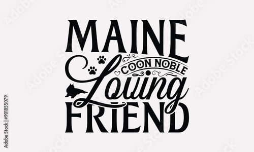 Maine Coon Noble Loving Friend - Maine Coon Cat T-Shirt Design, Illustration For Prints And Bags, Posters, Cards, Cameo, Cricut, Eps, Files As Cutting, Isolated Background.
