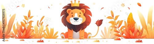 lion, cartoon, crown, regal, majestic, animal, wildlife, nature, king, predator, mammal, jungle, safari, graphic, design, art, painting, cute, adorable, mascot, logotype, emblem, symbol, icon, character, portrait, head, face, fur, mane, pride, power, authority, nobility, courage, strength, leadership, royalty, wild, fierce, felino, big, cat, forest, life, savanna, vegetation, landscape