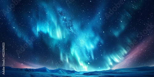 majestic, sky, aurora, star, blue, northern, light, background, copy, space, night, galaxy, winter, mountain, moon, science, north, black, sea, beautiful, astronomy, universe, travel, abstract, snow, iceland, borealis, polar, dark, fantasy, scenery, nature, nebula, solar, cold, planet, bright, landscape, starry, illustration