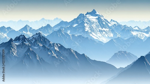 Majestic snow-capped mountain range panorama.