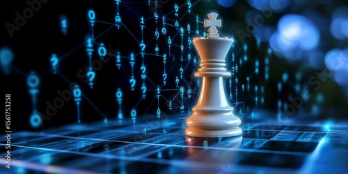 chess, king, chessboard, digital, binary, code, datum, strategy, dominance, challenge, competition, game, victory, defeat, leadership, concept, future, technology, algorithm, network, virtual, matrix, abstract, design, innovation, intelligence, solution, business, artificial, question, mark, system