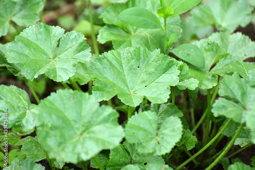 Mallow (Malva pusilla, Malva rotundifolia) grows in nature in summer
