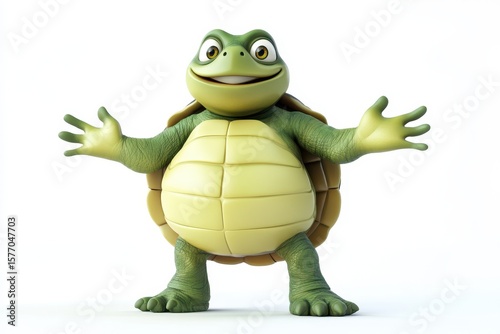 Man in turtle pose 3D CARTOON CHARACTER of ON WHITE BACKGROUND
